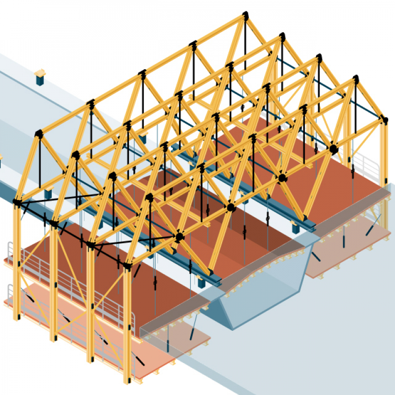 Les zones de circulation et l’accès aux postes de travail sont bien délimités. Généralement au niveau des culées du pont, l’accès au tablier nécessitera l’installation de rampes ou d’escaliers adaptés à chaque situation.