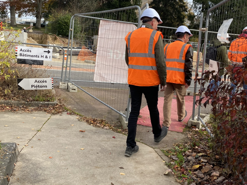 Les cheminements pour les piétons et pour l’accès au chantier sont matérialisés par un barriérage et des panneaux indicateurs.