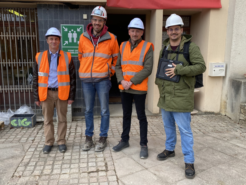 De gauche à droite: Stéphane Oscoso directeur Patrimoine et Développement à l’Odhac 87, Pierre-Yves Lambert, directeur de travaux chez Eiffage Construction, Tony Guimbard Urbain, chargé d’opération à l’Odhac 87 et Nicolas Fraysse, maître d’œuvre (agence Archimade 19).