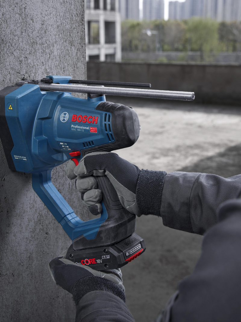 Le modèle GGC 18V-12 Professional de Bosch s’adresse en particulier aux électriciens, plombiers ou chauffagistes qui souhaitent réaliser des coupes de tiges filetées pour l’installation de chemins de câbles, de conduits de ventilation ou de faux-plafonds. Compact et bien équilibré, il offre une bonne prise en main pour des applications mobiles ou en hauteur. L’outil est équipé d’une butée de profondeur réglable et d’un éclairage LED pour améliorer la visibilité sur la ligne de coupe. Il est compatible avec les batteries et les chargeurs du système Professional 18V Bosch, ProCORE18V et de l’Alliance batteries AMPShare.