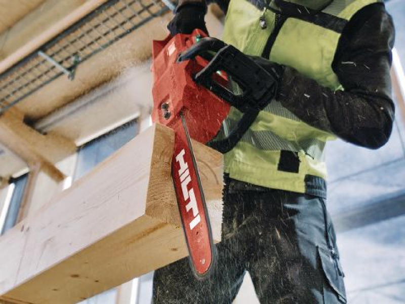 La nouvelle tronçonneuse sur batteries développée par Hilti se destine à la démolition bois et aux coupes d'ajustement dans des environnements nécessitant mobilité et performance.
