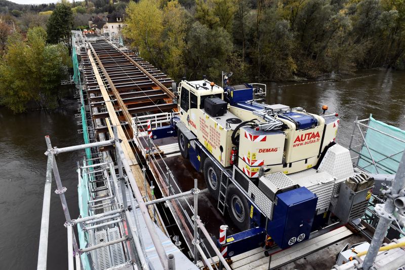 Construit en 1932, le pont en arc qui franchit la Dordogne au niveau de Groléjac montrait depuis plusieurs années des signes de faiblesse. D’un seul tenant de 150 mètres de long, sa structure en béton armé souffrait de telles pathologies que son accès était interdit aux véhicules de plus de 12 tonnes. Sous maîtrise d’ouvrage du Conseil départemental de la Dordogne, le programme a été confié en conception-réalisation à un groupement, dont NGE Génie Civil est le mandataire. La capacité portante de l’ouvrage va être de 45 tonnes (et même 70 tonnes pour le franchissement de convois exceptionnels) et un nouveau tablier, plus large, va sécuriser le passage des piétons et cyclistes. Les appuis existants (piles et culées) sont conservés de façon à éviter toute intervention dans le lit de la rivière.