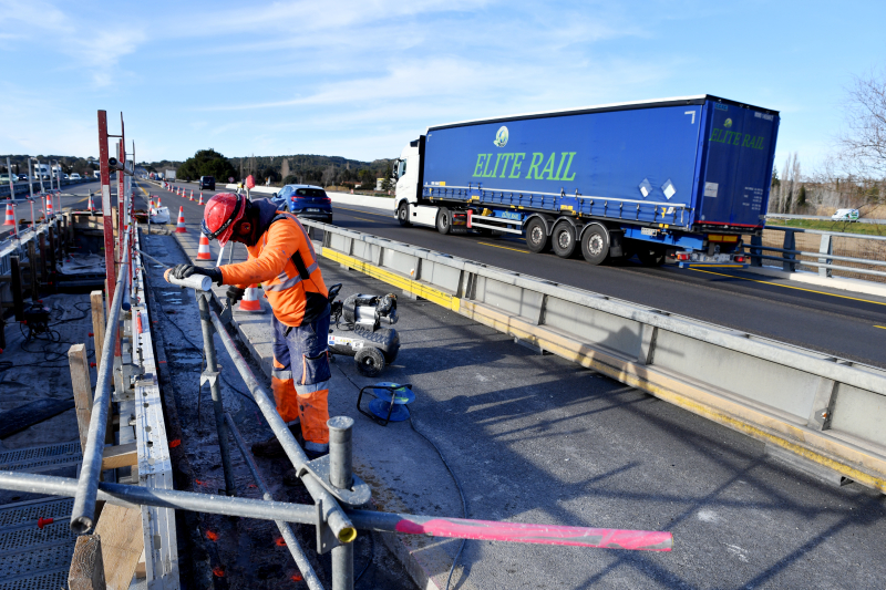 Sur l’A54, le remplacement d’une partie du pont autoroutier qui enjambe le canal EDF a été réalisé en deux mois par NGE Génie Civil. L’entreprise a procédé à la démolition du pont existant puis à la reconstruction d’un ouvrage mixte à l’aide d’une grue d’une capacité de charge de 120 tonnes. « Le mode opératoire retenu par l’entreprise a permis d’effectuer cette opération coup de poing dans une parfaite maîtrise du délai et de la qualité », commente Jean Pavard, conducteur d’opérations pour Vinci Autoroutes.