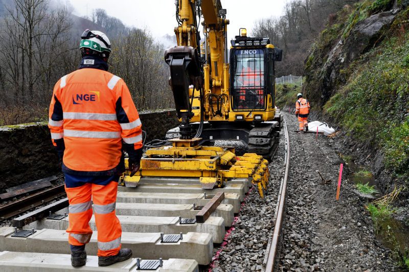Pour la réhabilitation de la ligne Montréjeau-Luchon, NGE mobilise plusieurs corps de métiers, dont une filiale spécialisée de TSO dans la sécurité ferroviaire.