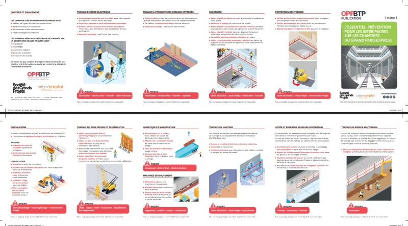 Ce mémo a été réalisé dans le cadre de l’accord de partenariat signé entre la Société des grands projets (SGP), l’OPPBTP et Prism’emploi et initié par le Conseil de la sécurité des chantiers de la SGP. Il présente les principales situations à risques rencontrées sur les chantiers du Grand Paris Express.