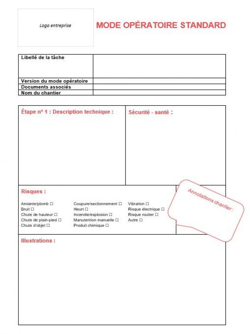 La structure d’un mode opératoire est prévue par le Code du travail (article R.4412-145), il doit préciser les neuf points suivants :
