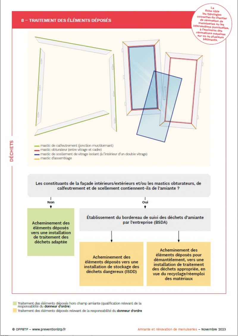 Fiche 8 Traiter les éléments déposés après rénovation d'une menuiserie pouvant contenir de l'amiante - pour les déchets non amiantés : un acheminement vers une installation de traitement des déchets adaptée,