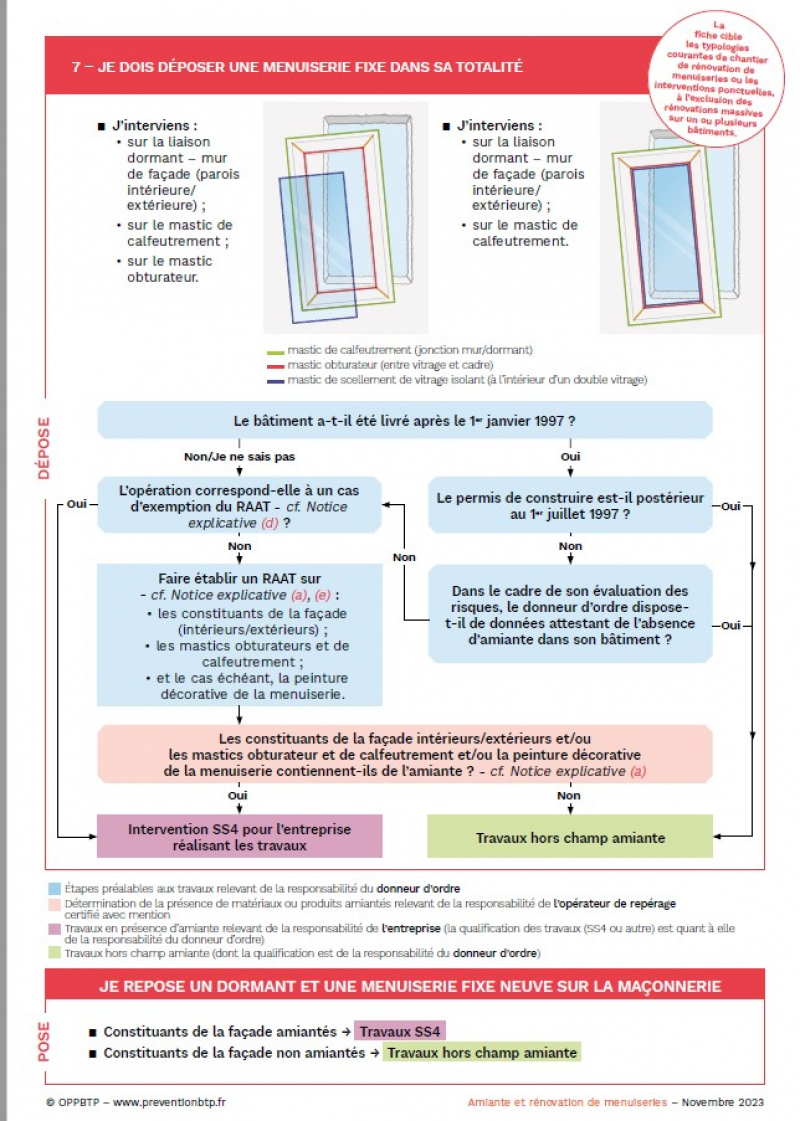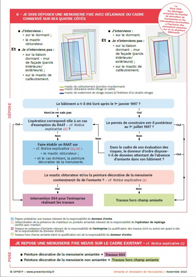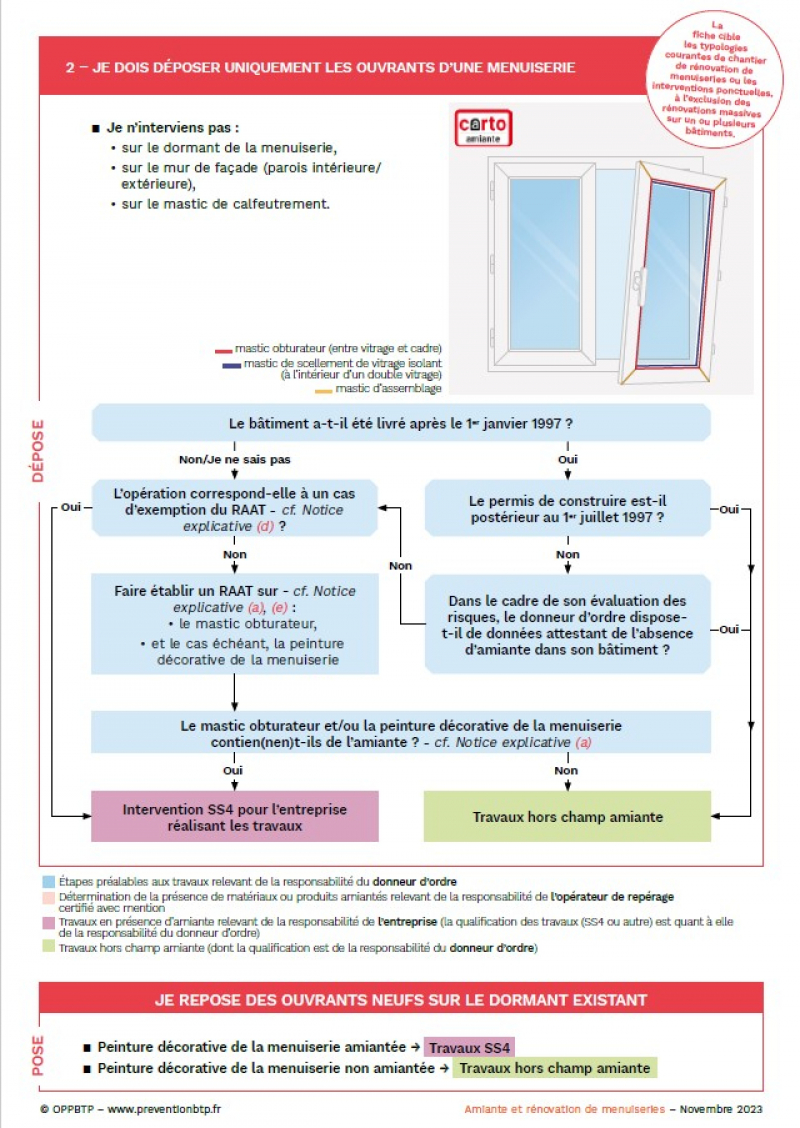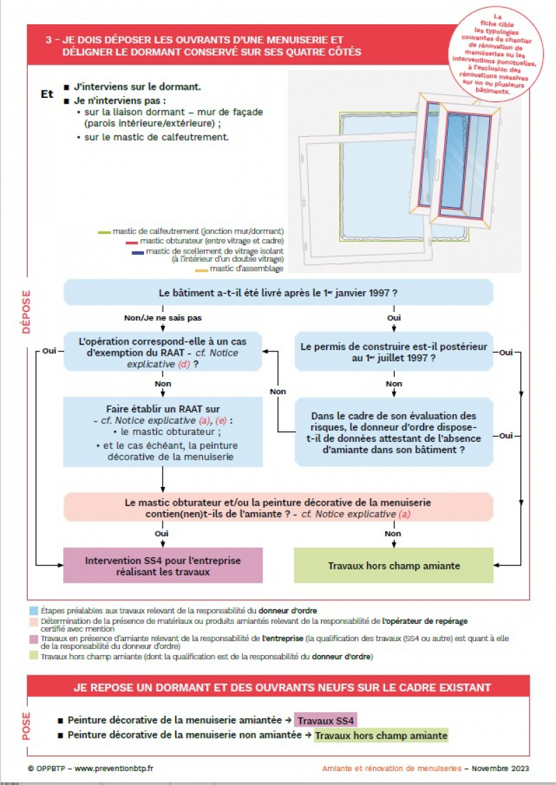 Fiche 4 Je dois déposer les ouvrants d'une menuiserie et le dormant dans sa totalité ou partiellement (au moins 1 côté). Avant de déposer les ouvrants d'une menuiserie et le dormant dans sa totalité ou partiellement (au moins 1 côté), suivez les étapes décrites dans cette fiche pratique pour travailler en sécurité.