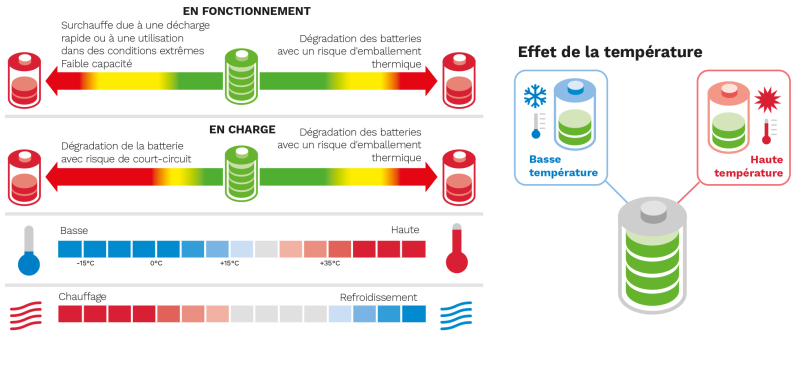 La température extérieure, chaude ou froide, a un impact sur la puissance électrique délivrée au matériel et sur la sécurité de la batterie.