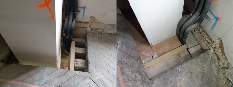 Cette technique est plutôt utilisée sur les chantiers de réhabilitation dont les planchers sont en partie constitués de solives (bois).