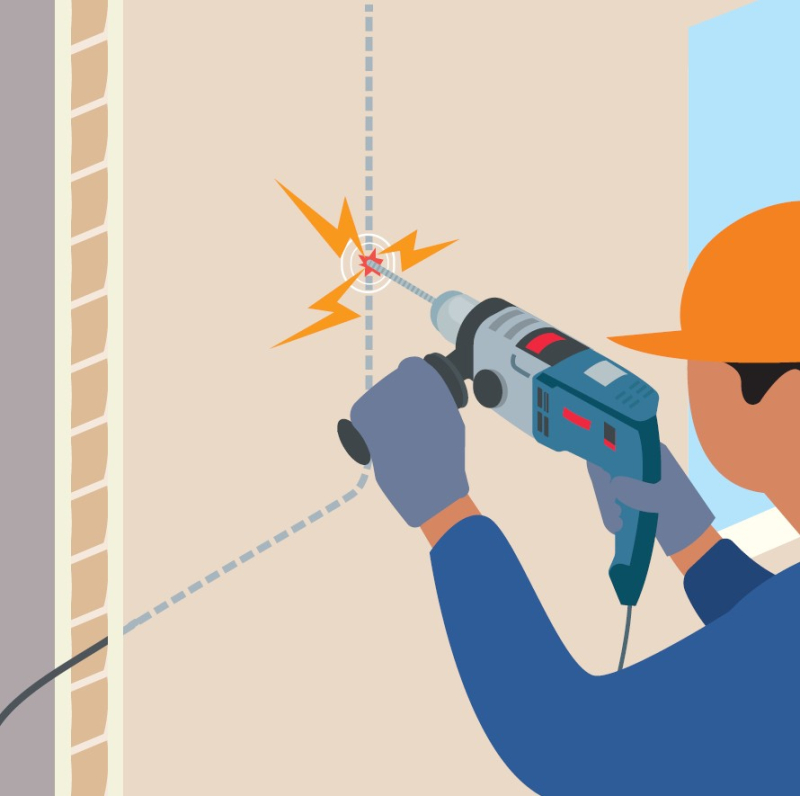 Perceuses, perforateurs, rainureuses,... sont impliqués dans les percements des ouvrages, ce qui peut provoquer des « flashs » en cas de percement de câbles électriques.