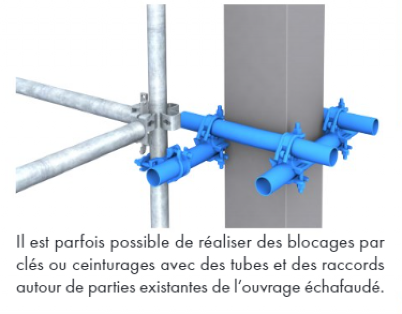 Pour plus d’informations, notamment sur les solutions adéquates, il est indispensable de se rapprocher du fournisseur de l’échafaudage pour formaliser une étude et réaliser les plans de montage.