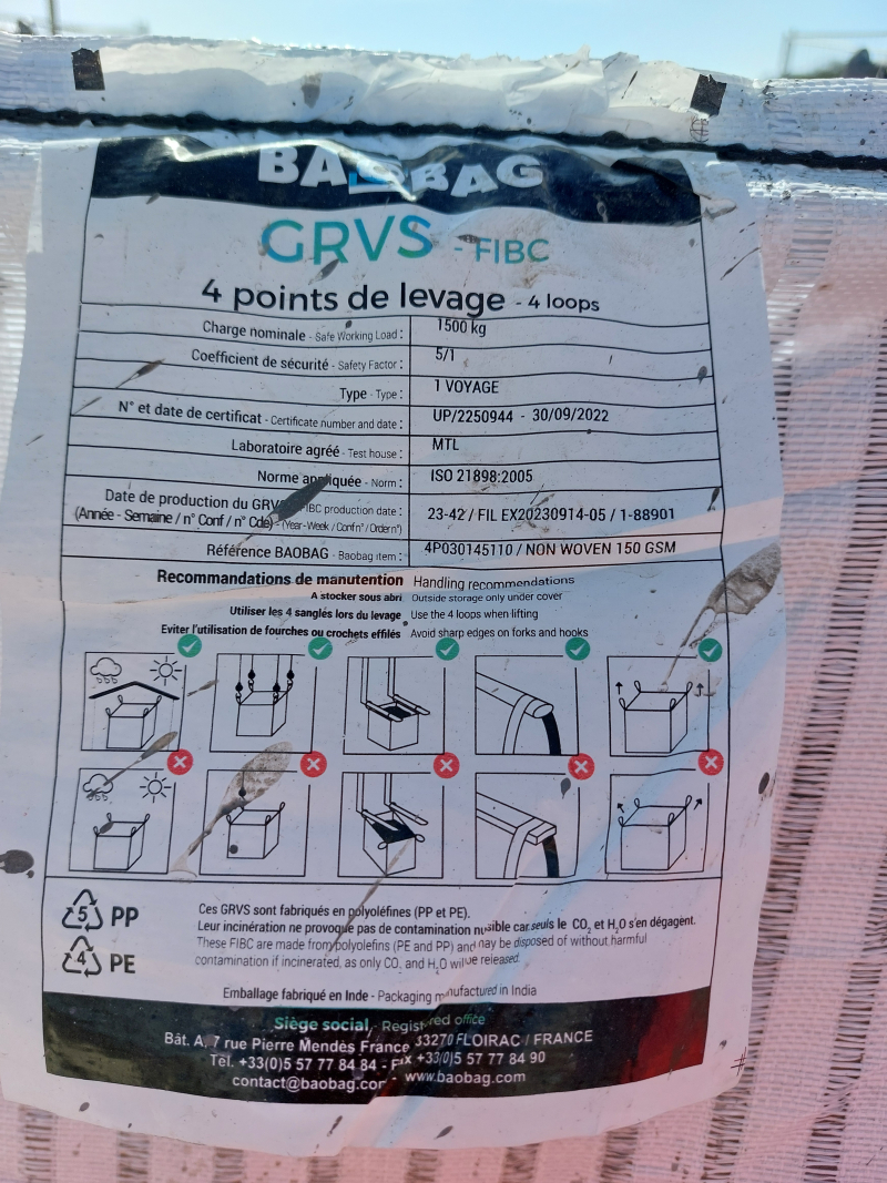Les consignes d'utilisation du big-bag sont détaillées sur l'étiquette fabricant