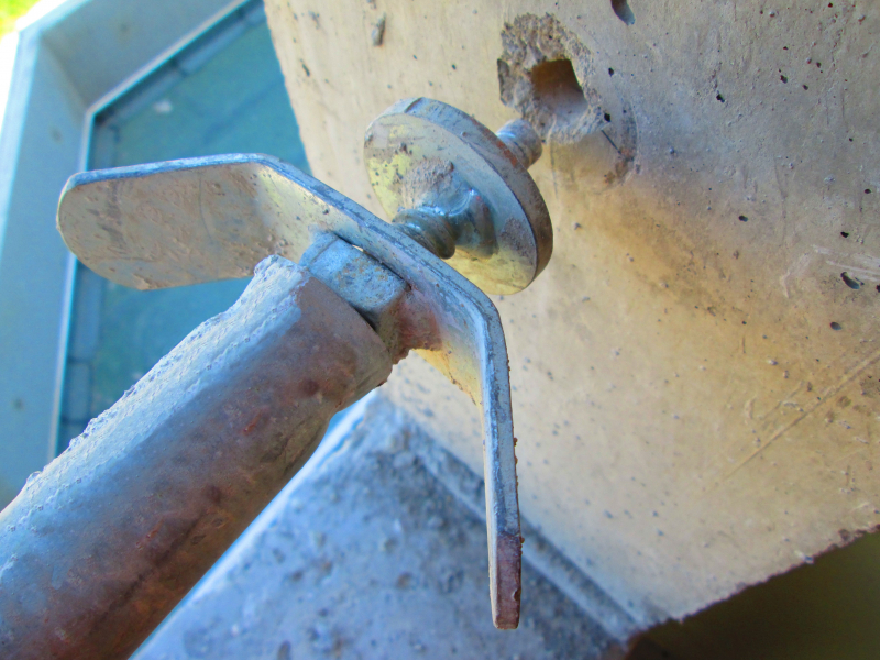 Pour les dispositifs fixés en tableau par téton et afin d’éviter la sortie du garde-corps de son logement, les tétons positionnés de part et d’autre du garde-corps doivent être incorporés au support, qui aura été préalablement percé à la section et à la longueur des tétons afin que ceux-ci soient entièrement ancrés dans le support.