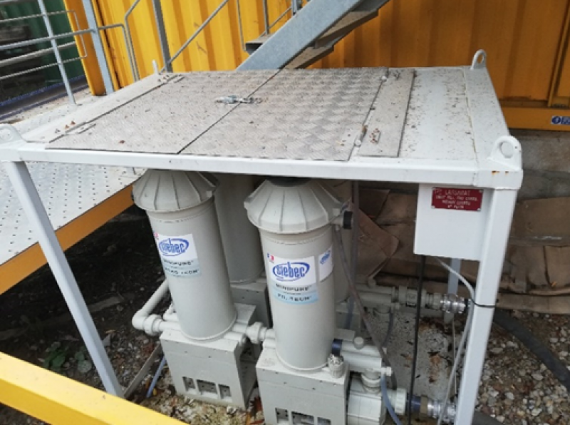 Photo 39 : L'appareil qui permet de filtrer les eaux des douches avant de les rejeter dans l'environnement. Pont de Sèvres à Boulogne-Billancourt (Entreprise Lassarat) Entretien des ponts métalliques : analyse des risques et prévention