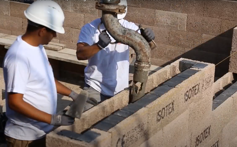 Développés par la société Isotex, les blocs en bois ciment associent un panneau de bois aggloméré, totalement ou partiellement issu du recyclage, du ciment Portland et un isolant. Positionnés à sec, ils sont remplis de béton avec une armature verticale et horizontale. Légers et maniables, ces blocs de coffrage permettent de réaliser les chantiers plus rapidement, tout en réduisant la pénibilité pour les opérateurs.