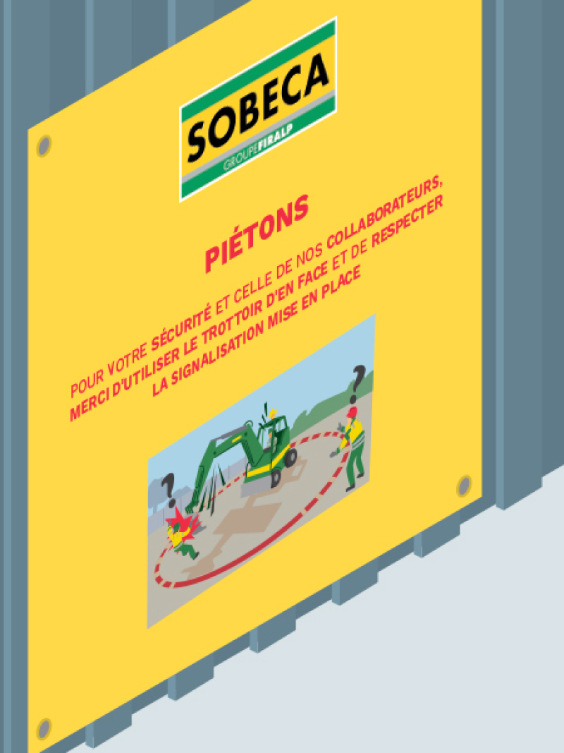 Pour limiter ces situations, l'entreprise Sobeca a fait réaliser des panneaux d’information à destination des passants. Ces supports visuels leur rappellent la nécessité de respecter la signalisation et le balisage mis en place, pour leur propre sécurité.