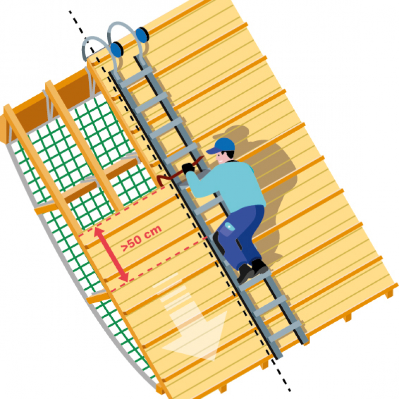 - La circulation se fait sur une échelle de toit ou un chemin de circulation adapté.