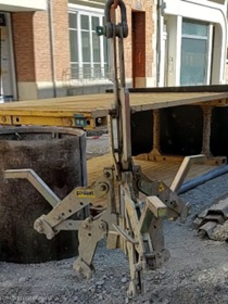 Lever plus facilement les éléments de regard avec une pince de manutention