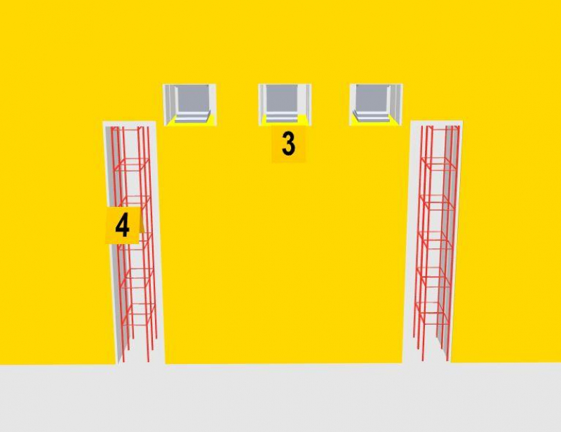 Figure 11 : Repère 3 : coulage des poteaux ; Repère 4 : ouverture mur et finitions.