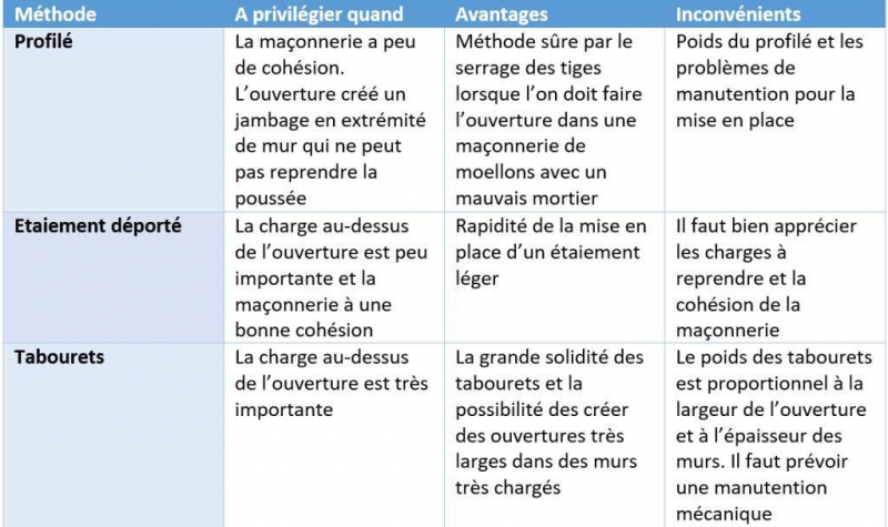 Un certain nombre de solutions permettent de créer des ouvertures dans les murs en pierre ou en moellons porteurs, souvent très épais et très lourds. Si elles sont correctement mises en œuvre, elles permettront de supprimer le risque d'effondrement du mur le temps de créer un linteau définitif.