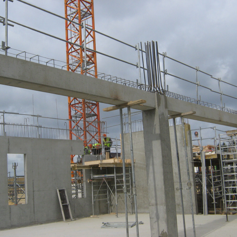 Ces équipements de protection collective sont utilisés par le gros œuvre. Les plates-formes de travail sont sécurisées et équipées de garde-corps d'une résistance aux efforts appropriée (NF EN 13374+A1, décembre 2018).