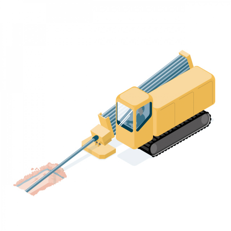 Pour réaliser un réseau enterré, vous pouvez opter pour des techniques comme le forage dirigé ou le fonçage, qui réduisent le terrassement, tout en limitant les risques de chute ou d’ensevelissement ainsi que les efforts physiques liés aux travaux en tranchée.