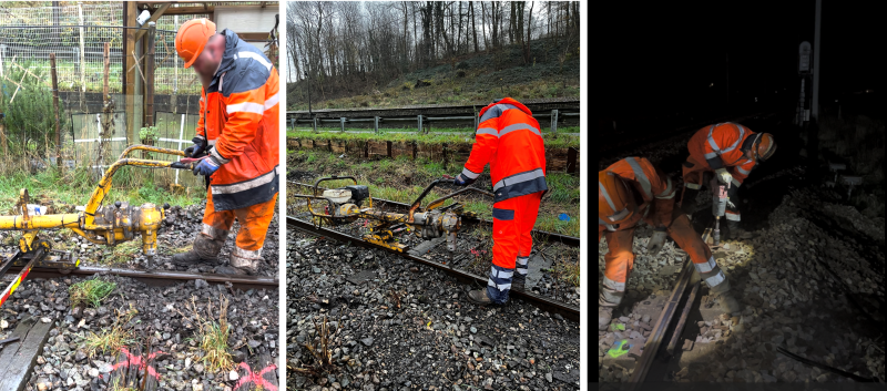 D’autres tâches comme le vissage des éclisses requiert également l’utilisation d’une clé à choc électrique.