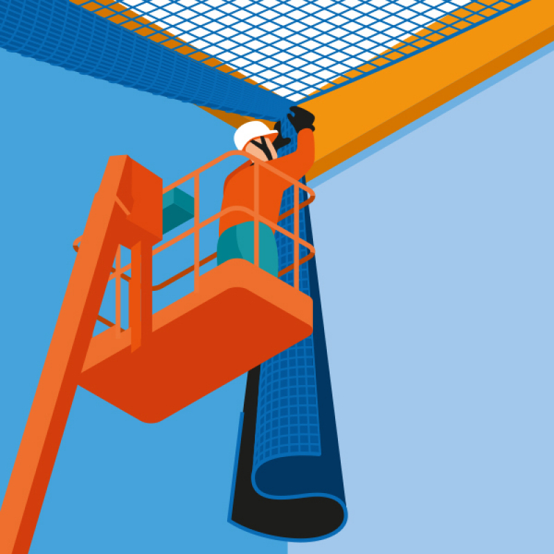 Protéger les opérateurs travaillant en hauteur avec des filets de sécurité en nappes (filets de système S)