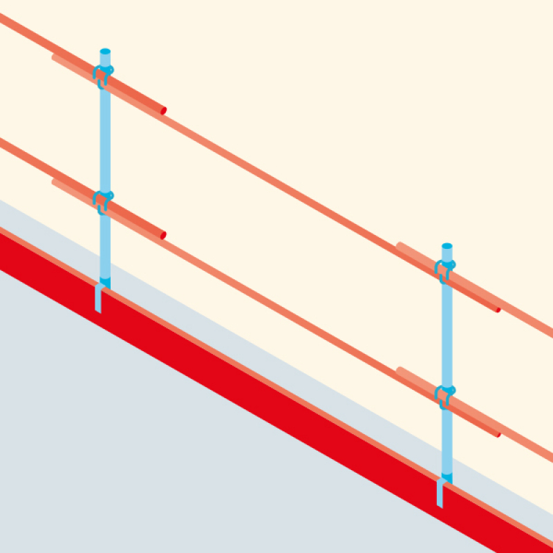 Les garde-corps font partie des protections collectives temporaires verticales mises en place lors des travaux en hauteur. Ils sont destinés à empêcher la chute de personnes et des d’objets, à l’intérieur ou à l’extérieur du bâtiment, vers un niveau inférieur.