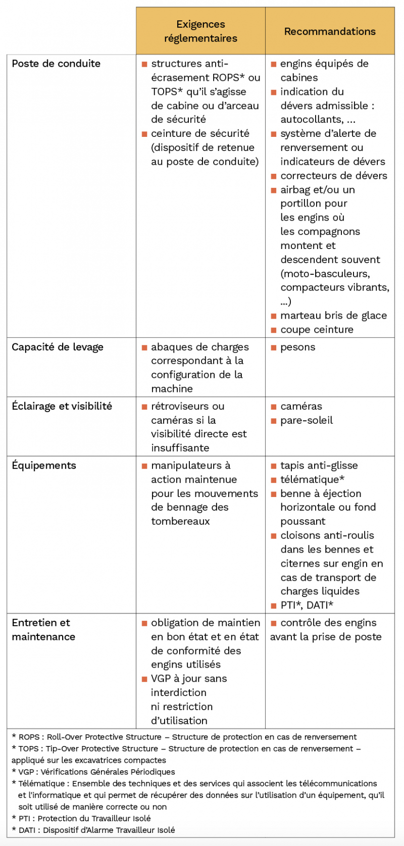 Par ailleurs, le renversement d’un engin expose également le personnel à pied ou les tiers se trouvant à proximité.