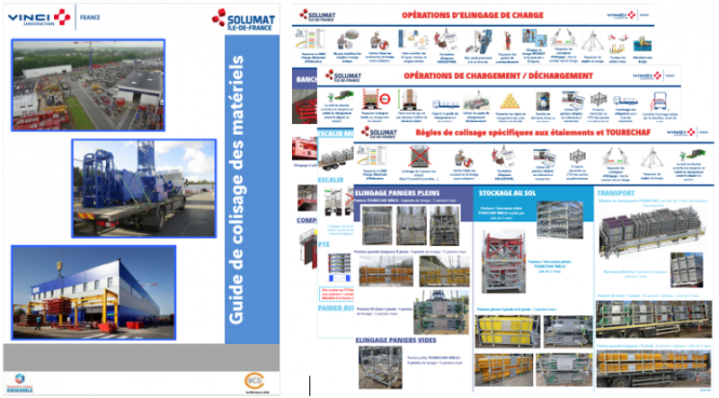 Ce guide de colisage des matériels, élaboré en interne, fait suite à de nombreux presqu’accidents et situations à risques constatés par l'entreprise lors des retours de matériels des chantiers. Il permet de mieux gérer les risques liés à de mauvaises conditions de chargement tant lors du transport sur route que lors de la réception et du déchargement du matériel dans les différents centres techniques de matériels (CTM) : basculement/renversement, écrasement, risque routier.