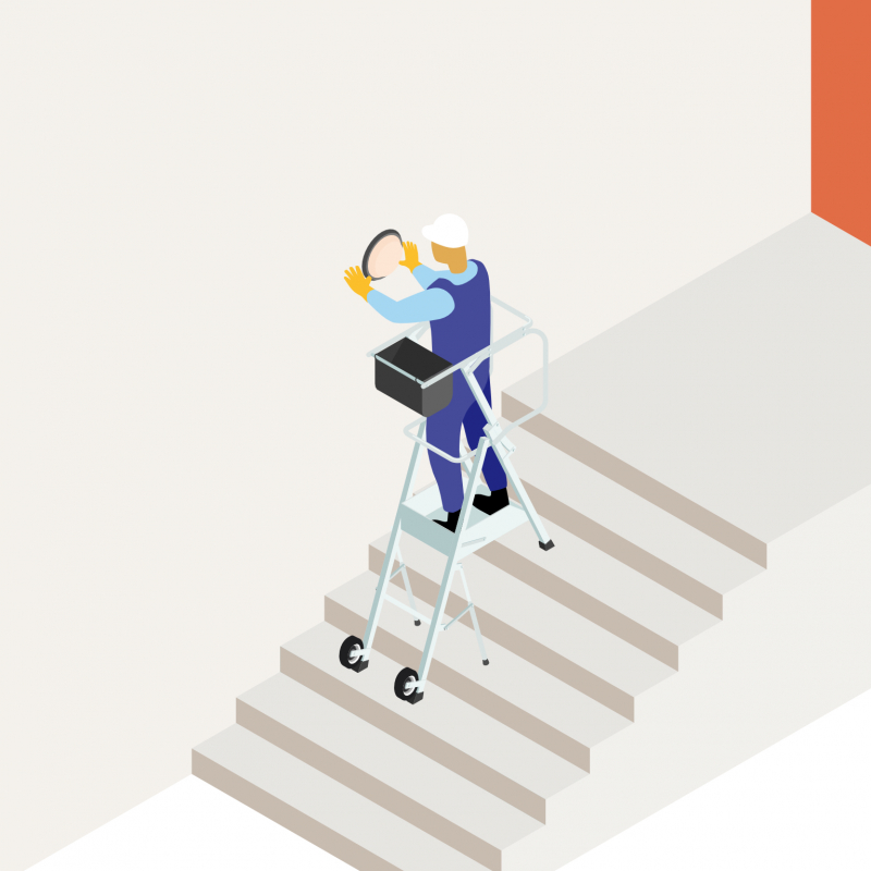 La plate-forme individuelle roulante (PIR) est utilisée par un seul compagnon pour effectuer des travaux en hauteur :