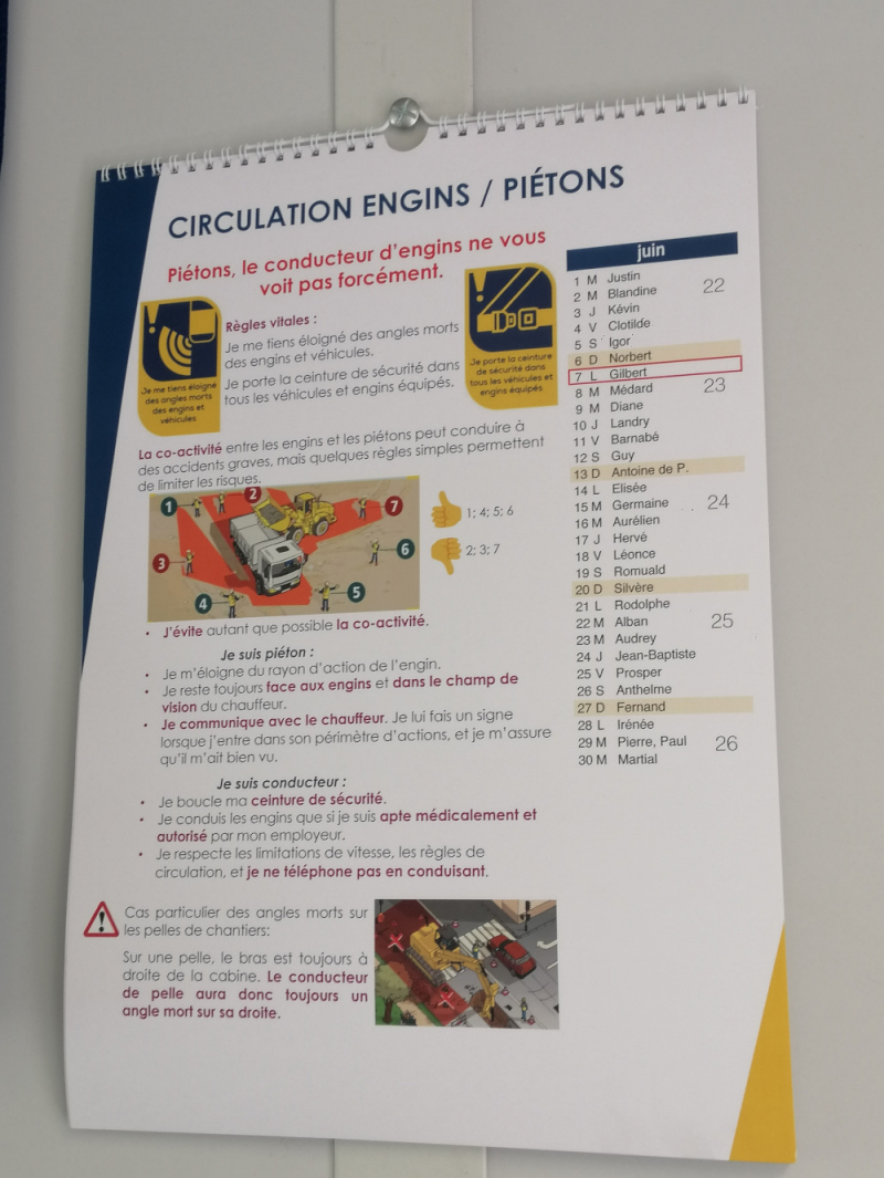 Chaque filiale et/ou agence de NGE Midi-Pyrénées est destinataire du calendrier « Quart d’heure sécurité ».