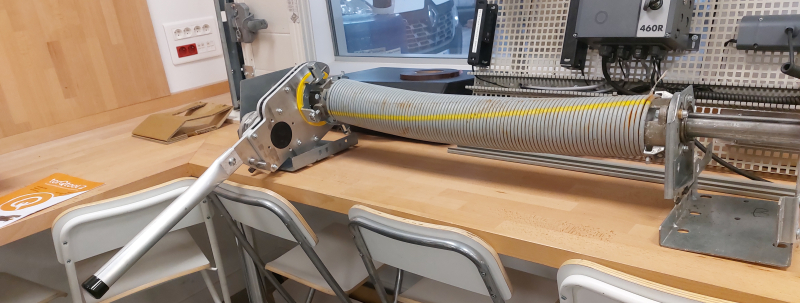 Une entreprise spécialisée dans les portes industrielles a investi dans un équipement permettant de bander/débander les ressorts de torsion de portes sectionnelles sans effort manuel. Le TorQtool 2 s'adapte à une visseuse pour réaliser la tâche mécaniquement.