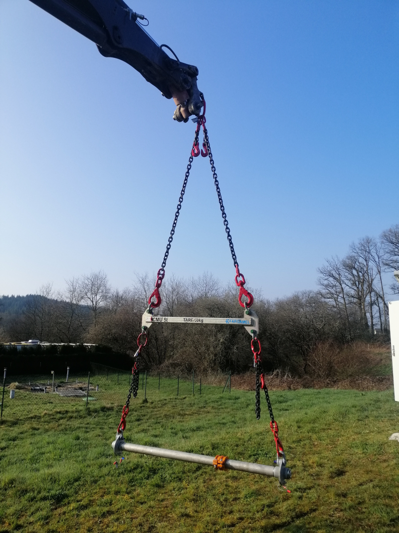 Associé à un engin de chantier, le palonnier de levage est une solution facile à mettre en œuvre pour les entreprises de travaux publics, et efficace. Cet équipement permet de dérouler les tourets en tranchée avec une sécurité améliorée pour les compagnons.